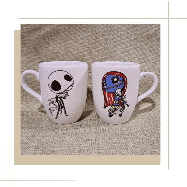 Set tazas con calcos vitrificados.