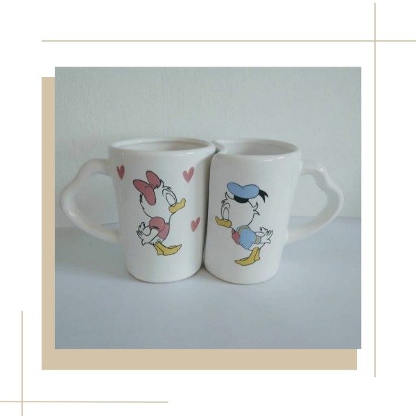 Set de tazas x2 en ceramica con calcos vitrificados.